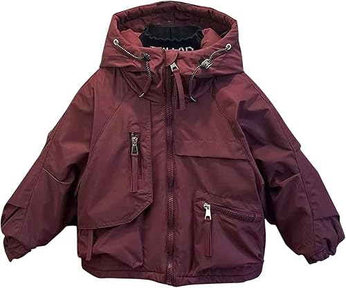 Girls Winter Parka Puffer Coat Lightweight Warm Jacket with Hood and Pocket Kids Down Outdoor Outerwear (Red, 8-9 Years)