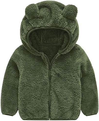 Unisex Boys Girls Plush Sherpa Hoodie Jacket, Fuzzy Fleece Zip-Up Coat with Ears for Winter Warm Outerwear