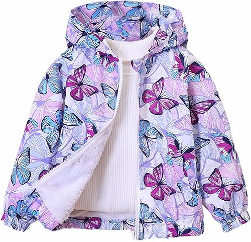 Betadog Girls' Full Zip Butterfly Printed Rain Jacket Girls' Rainslickers Rain Jacket Kids' Hoodies with Pocket