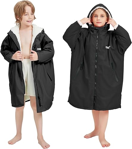 Kids Swim Parka, Waterproof Swimming Jacket, Hooded Surf Changing Robe, Warm Winter Swim Coat