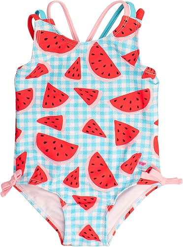 RuffleButts Girls UPF50+ Sun Protection Tie Shoulder/Cross Back One Piece Swimsuit