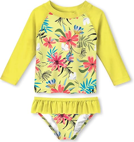 RuffleButts Baby/Toddler Girls Ruffle Hem Rash Guard 2-Piece UPF50+ Sun Protected Swimsuit
