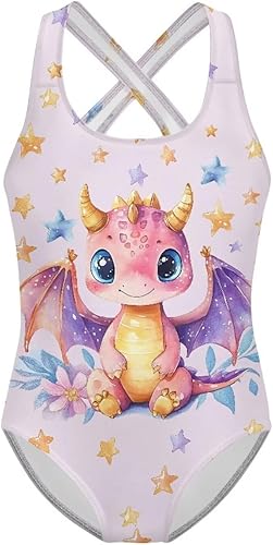 Girls One Piece Cat Swimsuits Quick Dry Cartoon Beach Bathing Suit Crossback Swimwear for Kids 5-14 Years