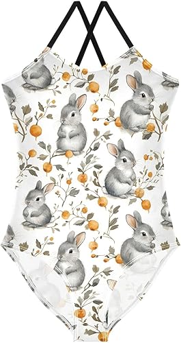 ALAZA Bunny Berry Rabbit Animal Girls Swimsuit Bathing Suit Beach Swimwear One Piece 3-10T