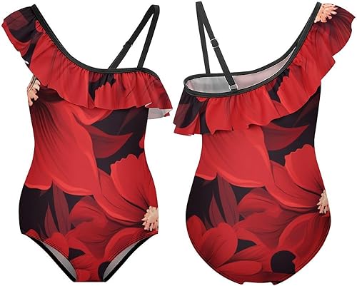 LIZENS Floral Ruffle One-Shoulder Girls' One-Piece Swimwear