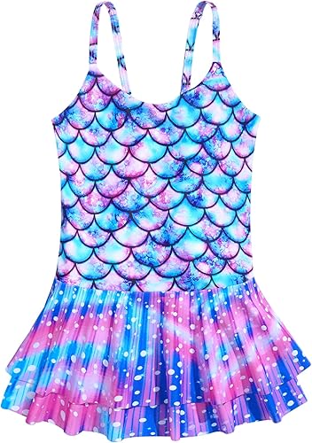 Girls Swim Dress One Piece Swimwear Fish Scale Printed Mermaid Swimsuit Summer Seaside Beachwear