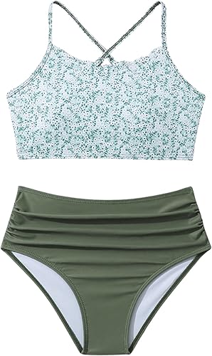 SHENHE Girl's 2 Piece High Waisted Bikini Sets Criss Cross Spaghetti Strap Swimsuit Bathing Suit