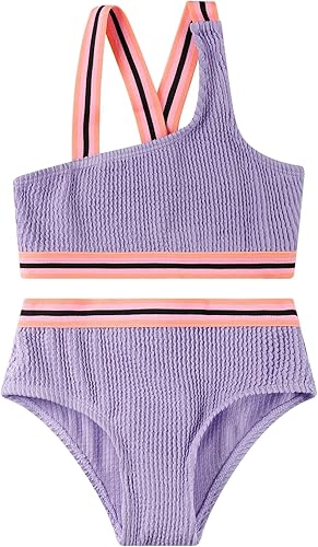 Crazyme Girls Swimsuit 2 Piece One Shoulder Cutout Bikini Top High Waisted Bottom Bathing Suits for Teens