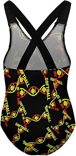 Softball is in My DNA Girl's One Piece Swimsuit Quick Dry Bathing Suit Cross Back Straps Swimwear 7-9Y(120cm)