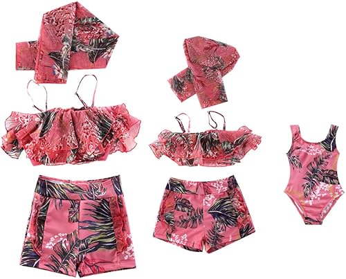 Mommy and Me Two Piece Swimsuit Floral Strap Top Shorts Family Matching Bathing Suits with Beach Cover up