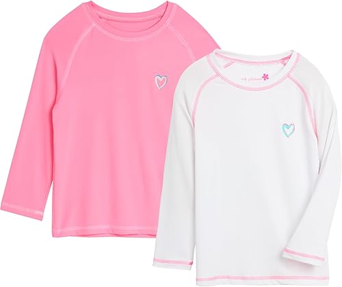 Pink Platinum Girls Rash Guard Set - 2 Pack UPF 50+ Long Sleeve Quick Dry Swim Shirts for Girls (Sizes: 4-16)