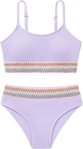 PASHOP Girl's 2 Piece Swimsuit Spaghetti Strap Cute Bikini High Waisted Bathing Suit Swimwear Size 8-12