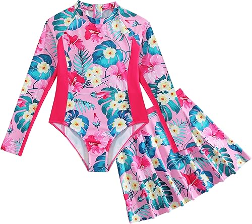LQSZ Girls One Piece Swimsuit with Cover Up Beach Skirt Set Two Piece Bathing Suit Swimwear 3-12 Years