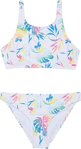 Roxy Girl's Good Romance Crop Top Swimsuit Set (Big Kids) Bright White Surf Trippin 16 Big Kid