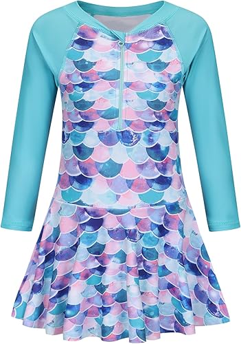 Girls One Piece Swimsuits Long Sleeve Swim Dress for Girls Hawaiian Skirted Bathing Suit Summer Swimwear 3-16 Years