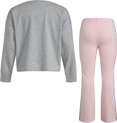 adidas Girls' 2-Piece Long Sleeve Graphic Tee & Flare Pant Set, Grey Heather Pink, 4