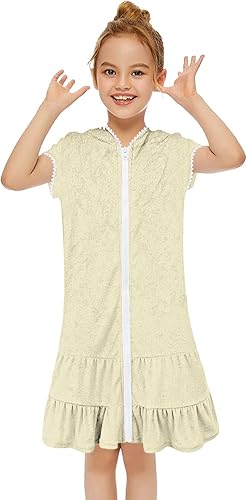 Kids Toddler Girl Swim Cover Up Zip Up Hooded Towel Terry Swimsuit Robe Pool Beach Bathing Suit Wrap