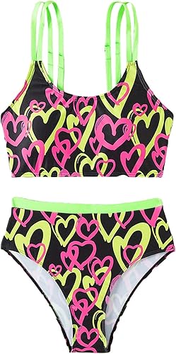 WDIRARA Girl's Heart Print Bikini Set 2 Piece Swimsuits Spaghetti Strap Bathing Suits