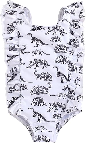 Toddler Girls One Piece Swimsuits Ruffle Trim Bathing Suit Funny Dinosaur Swimwear Baby Girls Swimsuit Swimming Suit