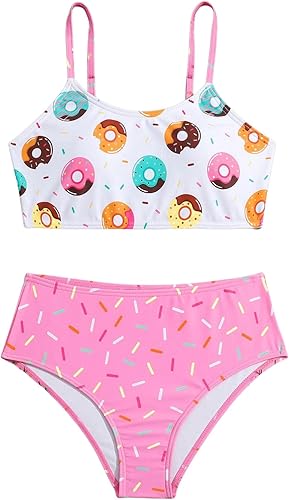 GORGLITTER Girl's 2 Piece Swimsuit Graphic High Waisted Bikini Cute Bathing Suits Pink 10Y