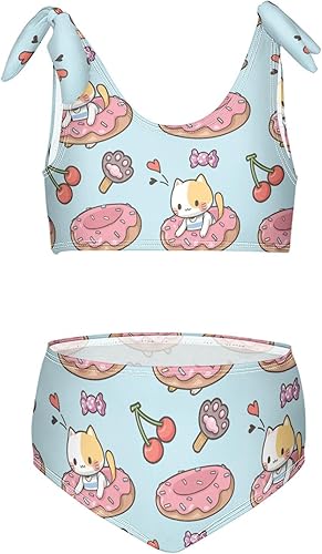 Wusikd Cat Donut Girls Swimsuits Two Piece Swimwear Bikini Set for for Girls Size 9-10
