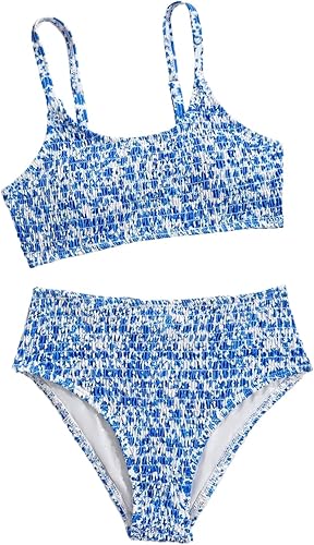 Girl's Ditsy Floral Bikini Set Spaghetti Strap Smocked Bathing Suit Two Piece Swimsuit