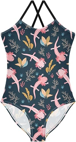 Girls Axolotl Swimsuit One Piece Bathing Suit Kids Swimming Suits Beach Swimwear 3-10T