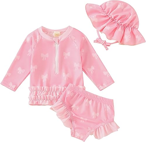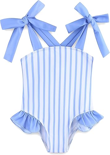 Toddler Girls Swimsuit with Hat Ruffle Stripe Swimwear Summer Beach Bathing Suit 6M-4T