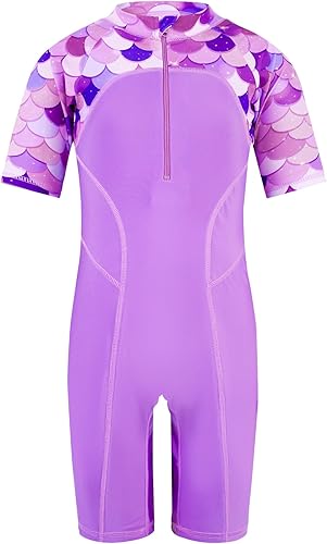 TFJH E Girls Short Sleeve Swimsuits UV 50+ Rash Guard Sunsuits One Piece Bathing Suits 3-12Y