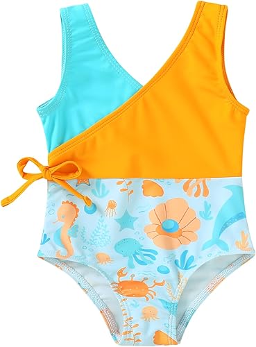 YOUNGER TREE Toddler Girl One Piece Swimsuit Color Block Stripe Swimwear Summer Beach Bathing Suit 12M-5T