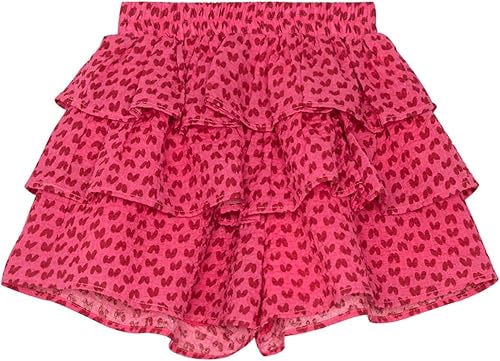Kids Girls Layered Ruffled Short Skirt Cute Flower Patterns Elastic Waist Skort Fashion High Waisted Short Dresses