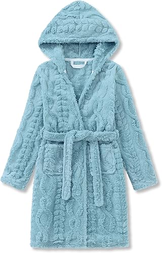 Boys Girls Robe Kids Flannel Hooded Bathrobe Sleepwear Pajamas Toddler Soft Plush Robes for Girls 2-16 Years