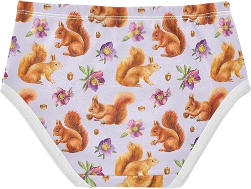 Wusikd Squirrels Girls Underwears Cotton Animals Flowers Girls Briefs Soft Toddler Underwear 5T Multi
