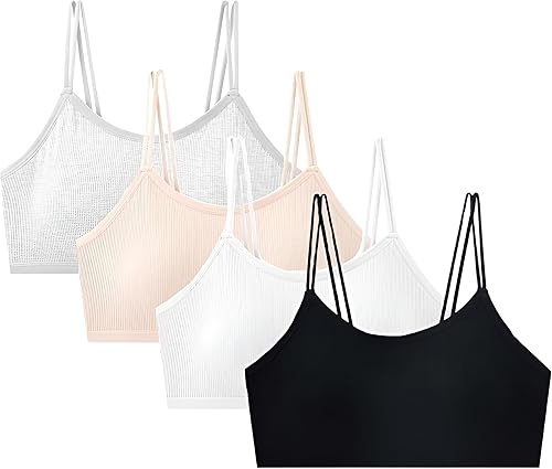 4 Pack Girls Training Bra Kids Crop Tops Lightly Padded Sports Bra Comfortable Cotton Bras Elastic Straps Bras for 8-16 Years Black