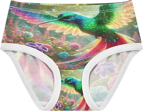 Toddlers Underwear Floral Cotton Panties for Girl Durable Undies Kids Briefs Vibrant Hummingbird Garden Flowers Green