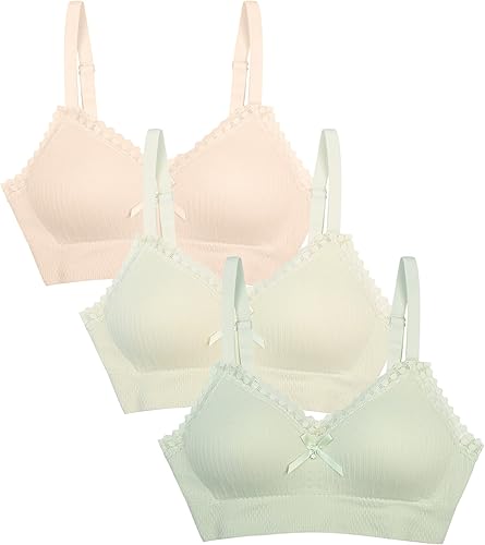 Happy Cherry Teens Girls Adjustable Training Bra Seamless Wireless Bra Lightly Padded Bra Back Clouse Students 32-38AB