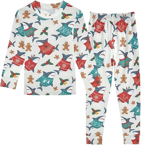 Pajama Sets Long Sleeve Christmas Shark with Sweaters Soft Comfy Sleepwear 2 Piece PJS 3-8T