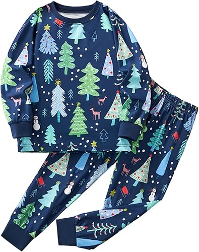 Pajama Sets Long Sleeve Christmas Trees on Dark Soft Comfy Sleepwear 2 Piece PJS 3-8T