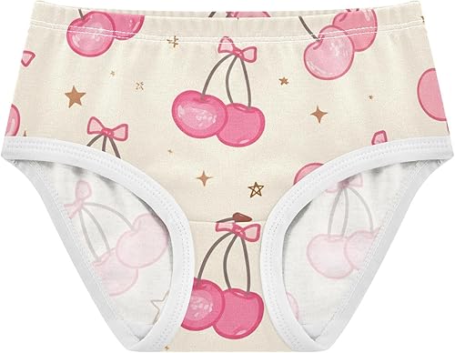 Cute Pink Cherries Bows Beige Toddler Girls Underwear 2t Cotton Little Girl Panties Flower Briefs Kids Undies