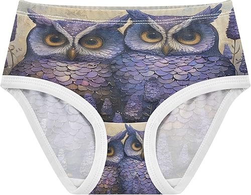 Lavender Owls Flowers Panties Little Girl Toddlers Underwear Floral Cotton Stylish Briefs Kids Undies