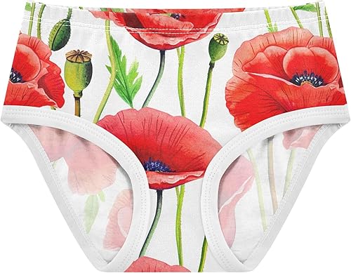 GAIGEO Pattern Toddlers Underwear Floral Cotton Panties Little Girl Vibrant Red Flowers White Underpants Briefs