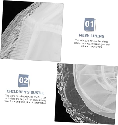 Boy Girl Petticoat Underskirt Lace Mesh Lining for Wedding Dress Fluffy Skirt for Dance Cosplay and Parties Comfortable Elastic Dress Showing White