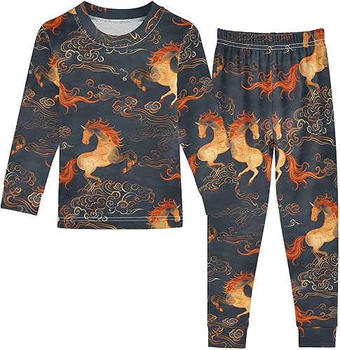 Pajama Sets Long Sleeve Horses on Cloudy Soft Comfy Sleepwear 2 Piece PJS 3-8T