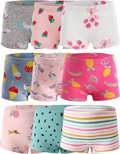 Kiench Little Girls' Boyshort Underwear 100% Cotton Toddler Panties Pack of 9