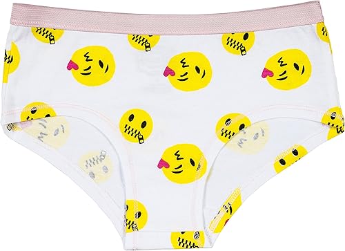 Trimfit Girls 10-pack Millennial Emoji 100% Cotton Boy Short Panties, Emojis/Hearts, Small US