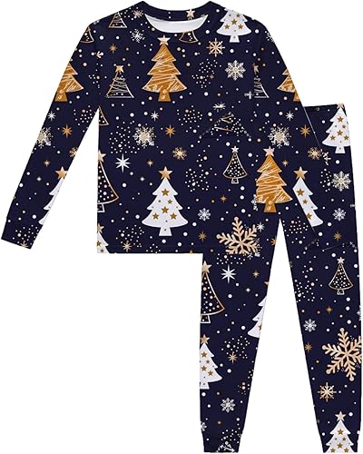 Kids Christmas Outfit Xmas Tree Graphic Crew Neck Pullover Shirt Casual Pants Suit Winter Holiday Party 2 Piece Set
