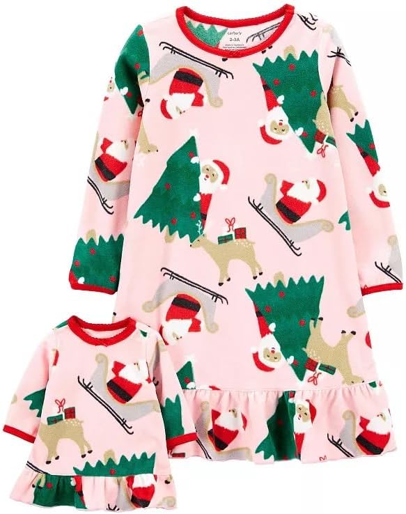 Carter's Girls' 4-14 Gown and Doll Dress Set (Pink Christmas/Santa, 12-14)