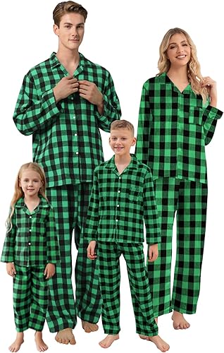 Ekouaer Family Matching Pajamas Christmas Sleepwear Long Sleeve Sleep Shirt with Plaid Pants Soft Loungewear Pjs Set S-XXL