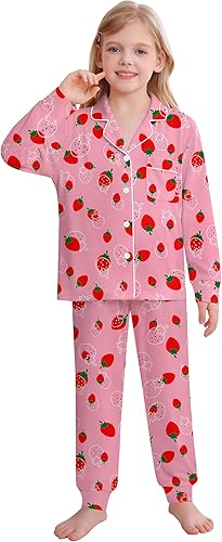 SWOMOG Pajamas for Girls 2 PCS Long Sleeve Button Down Sleepwear Match Kids Soft Sleepwear Big Girls Pjs for Size 4-15