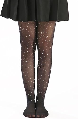 LUCKELF Girls Glitter Tights, Soft Opaque Tights Sparkle Rhinestone Tights School Dress Dance Stockings
